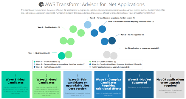 - Complex candidates: applications requiring additional effort such as those with Legacy C# and more than 50 dependencies.